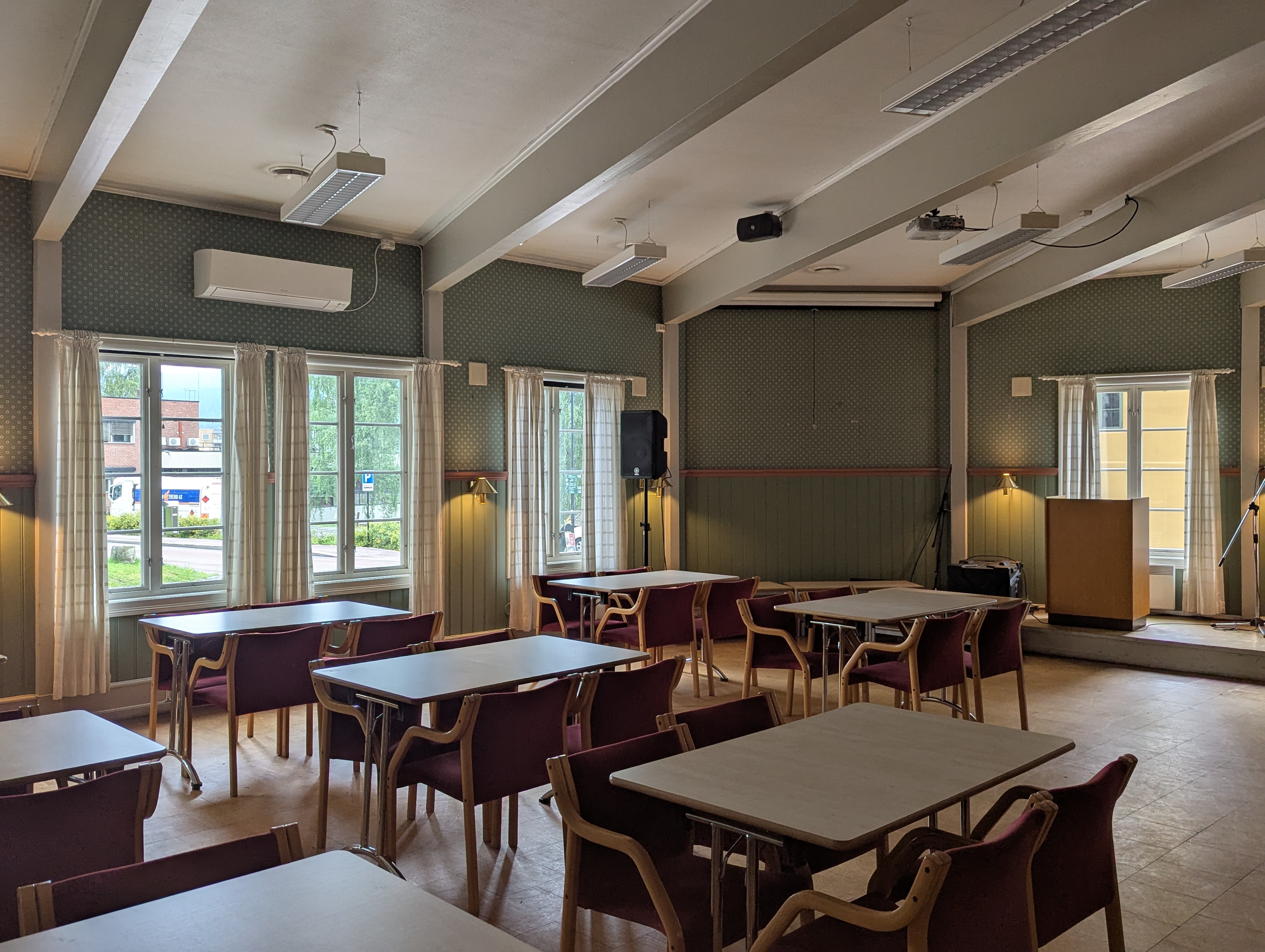Loftstuen har skråtak og utgang til altan (15m2). Loftstuen har til daglig oppsett med 9 bord, 4 sofaer, 26 stole og stor tusjtavle. Vinduer på to kortvegger. Elektrisk oppvarming.